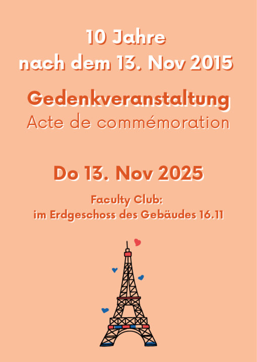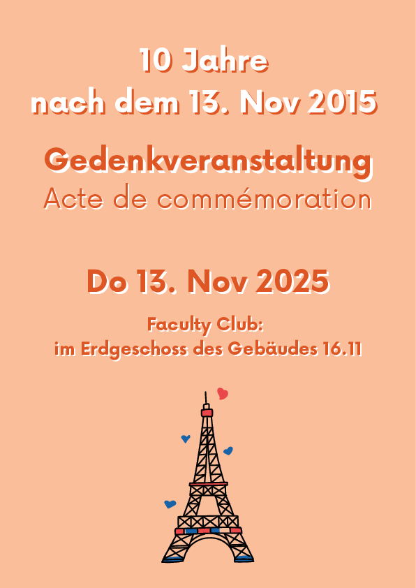 Am 13. November 2025 jährt sich zum zehnten Mal der Tag, an dem in Paris im Jahr 2015 bei islamistischen Terroranschlägen 130 Menschen getötet und 683 verletzt wurden, darunter mindestens 97 schwer. Wir wollen an diesem Tag den Opfern gedenken und uns fragen, in welcher Form die Zivilgesellschaft in Frankreich, aber auch in Deutschland mit (islamistischem) Terror umgeht. Ist er Teil einer „Kultur der Angst“ und worin besteht diese? Wie werden die Anschläge „ästhetisch“ bewältigt?